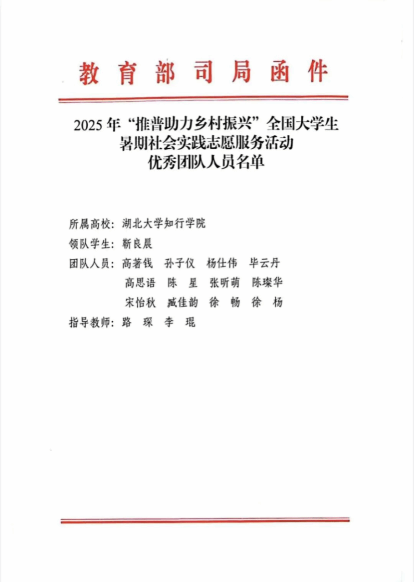 喜报!我校大学生暑期社会实践志愿服务队获教育部、团中央表彰!