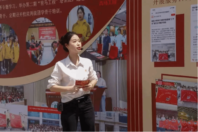4月28日,“青春挺膺担使命 砥砺奋进谱新篇”纪念五四运动106周年,知行学子对五四系列展览做讲解介绍。