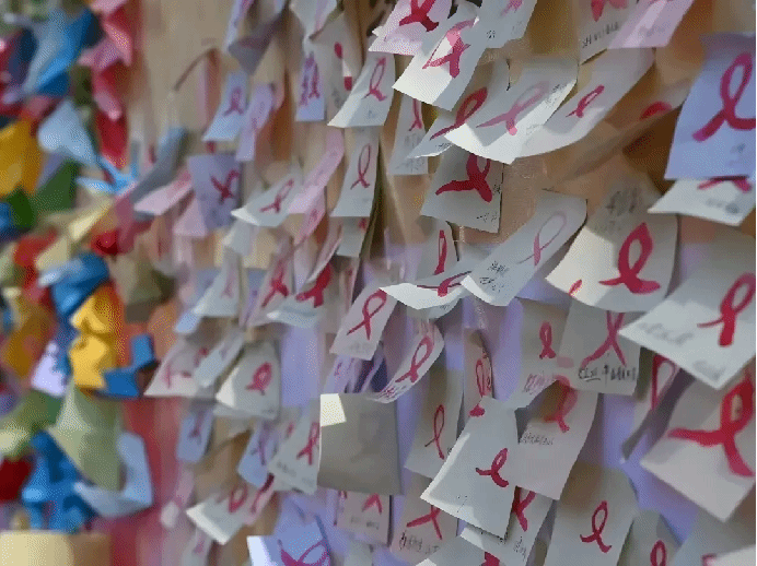 11月27日至28日,防艾嘉年华活动,同学们用便利贴制作的防艾宣传标语。