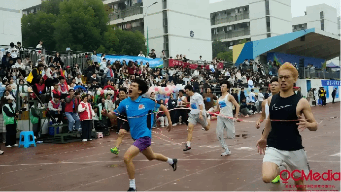 11月7日,第十九届校运动会上,田径选手冲过终点线的精彩瞬间。